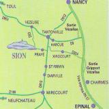 puis la sortie n°11 « COLOMBEY-LES-BELLES - NEUFCHÂTEAU, CHARMES »; - suivre COLOMBEY-LES-BELLES - GOVILLER - SAXON SION. Les